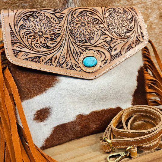 • Bushfire Road Calamity Cowhide Fringe Bag