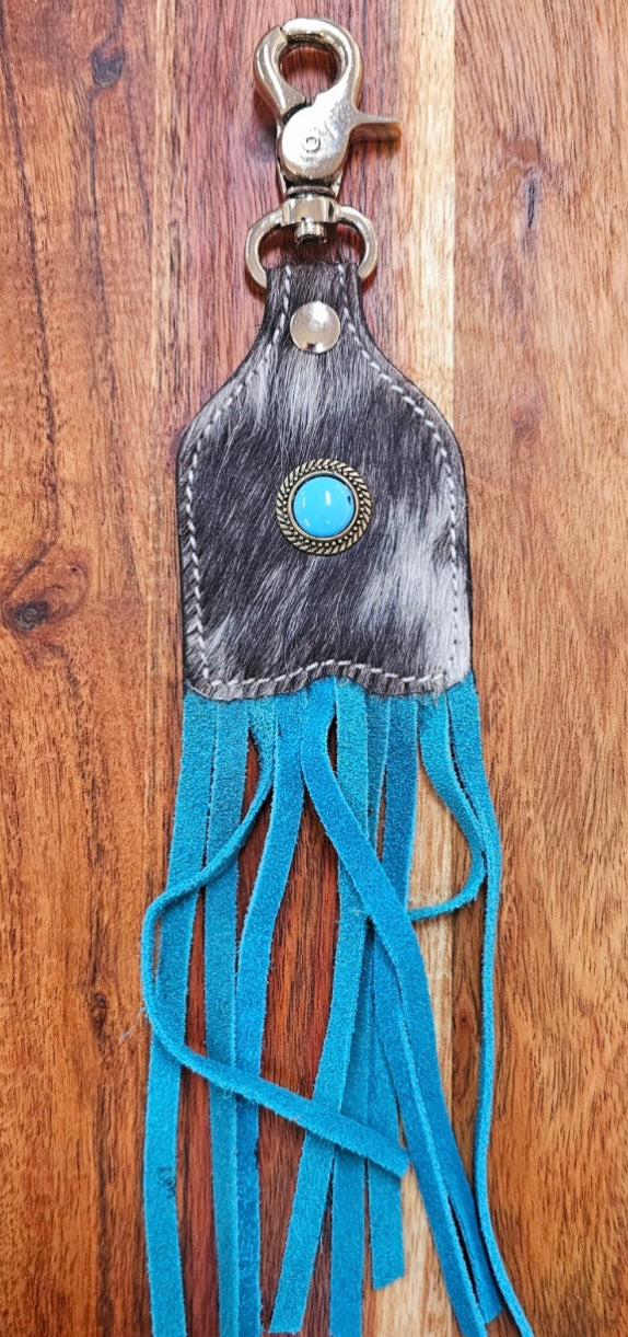 • Bushfire Road Blue Tassel and Blue Gem Tooled Key Ring