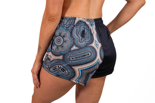 Aussie Footy Shorts - AFS - Footy Short - Indigenous Dot Art Black