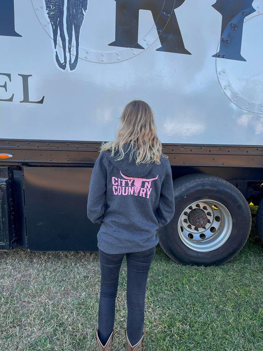City N Country Adult Classic Charcoal and Pink Hoodie