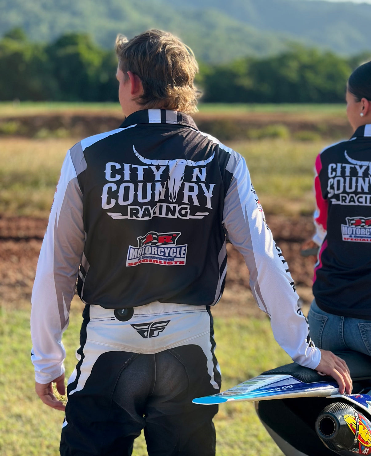 • City N Country Adult Racing Long Sleeve Taupe Black and White Jersey
