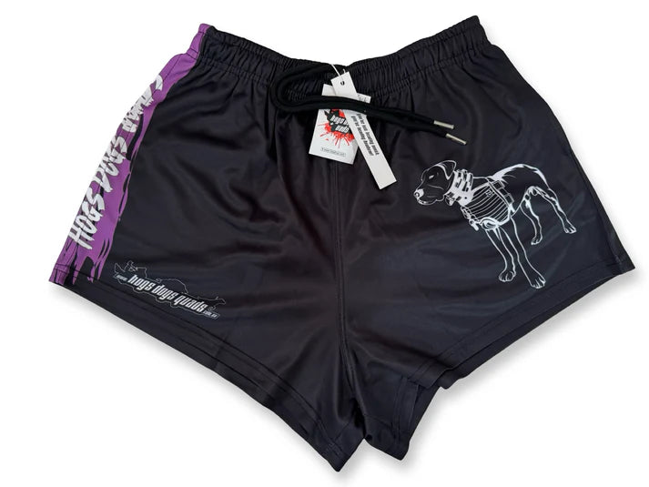 • Hogs Dogs And Quads Adult Pig Dog Black Purple Stripe Footy Short