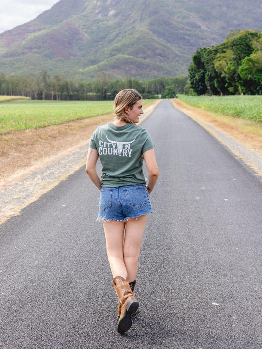 City N Country Ladies Classic Sage and Silver T-Shirt