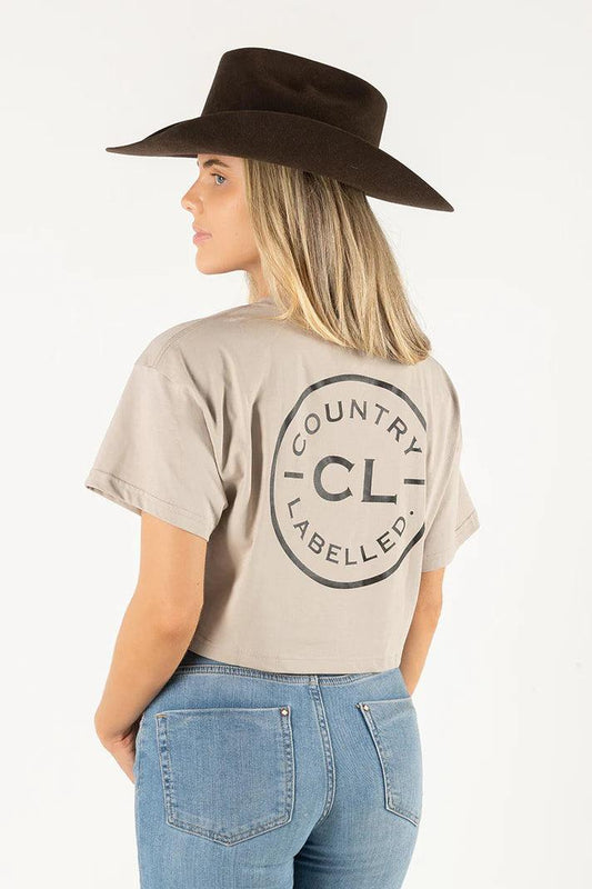 Country Labelled - Shirt - Womens - Signature Crop - Mushroom And Black Logo