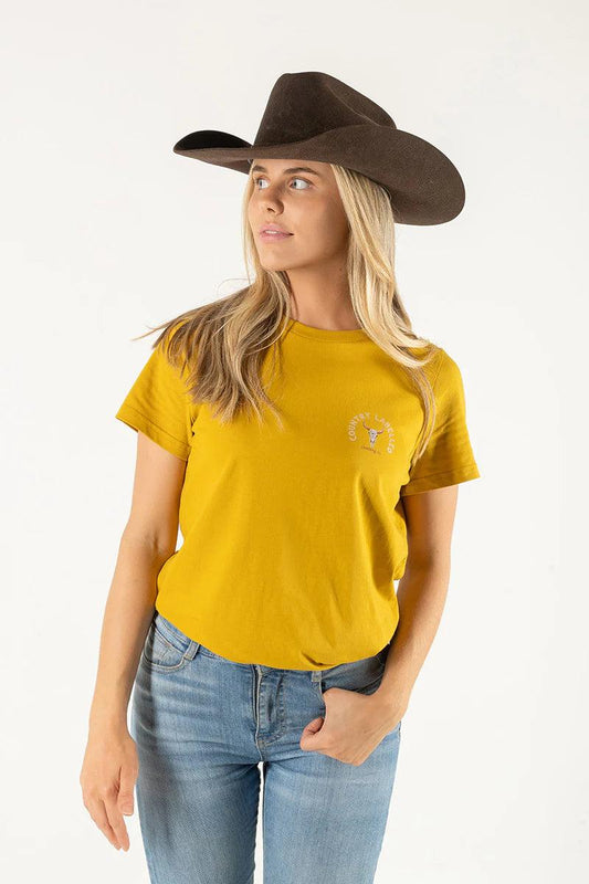 Country Labelled - Shirt - Womens - Classic Signature T Shirt - Camel And Western Skull Logo